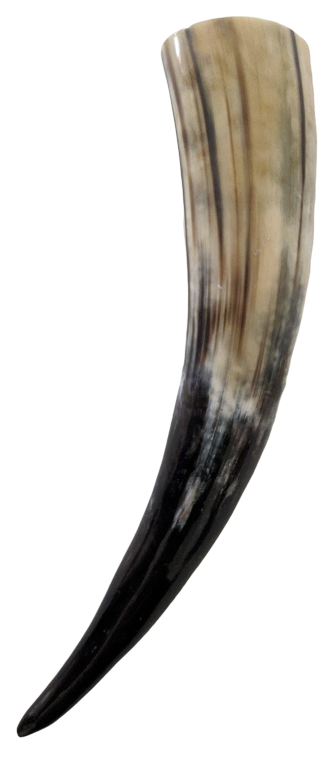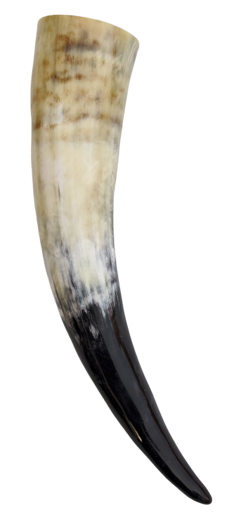 Info: Jedes Trinkhorn ist ein Unikat, weshalb sich die Naturprodukte farblich leicht voneinander unterscheiden. Neben der charakteristischen Farbe Schwarz sind auch Weiß- und/oder Brauntöne enthalten.