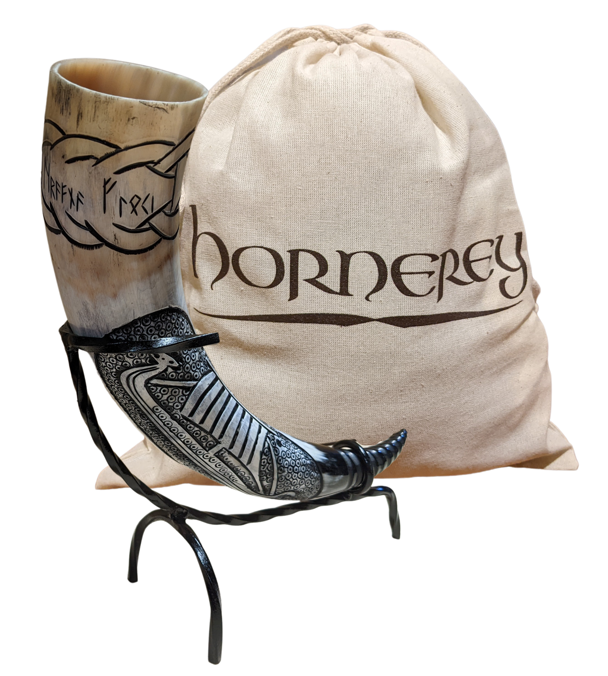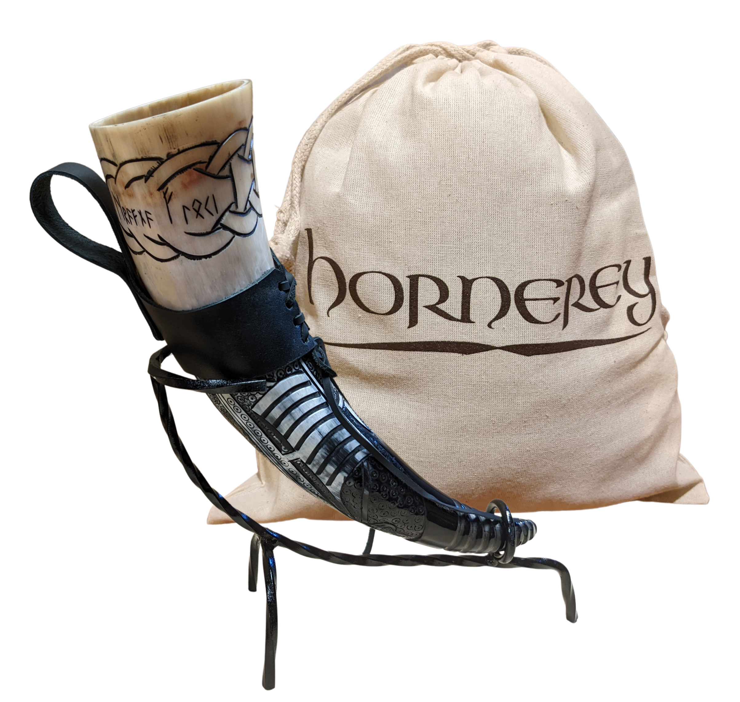 Ist gibt wohl kaum etwas, aus dem sich Bier oder Met besser genießen lassen, als aus einem echten Wikinger-Trinkhorn! Um sowohl zuhause als auch unterwegs bestens gerüstet zu sein, gibt es Floki's Horn im praktischen Komplettset: