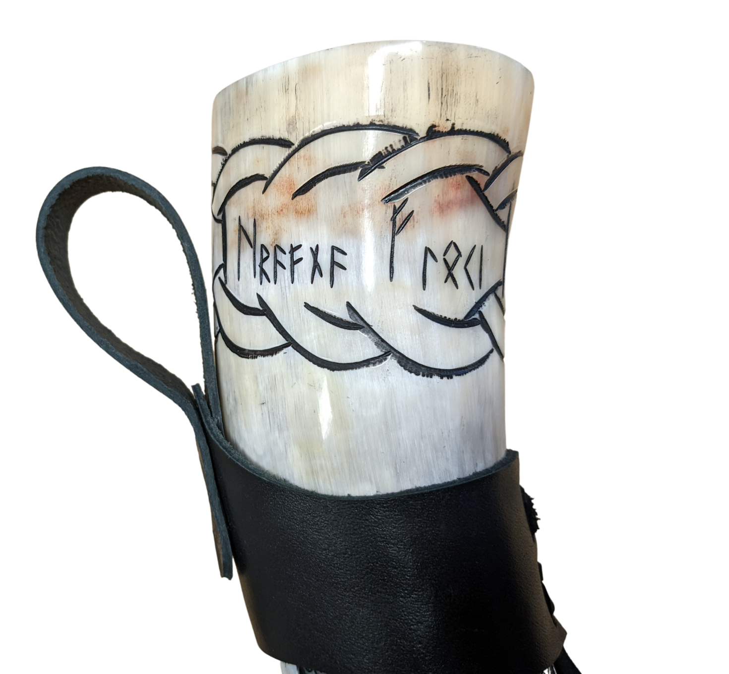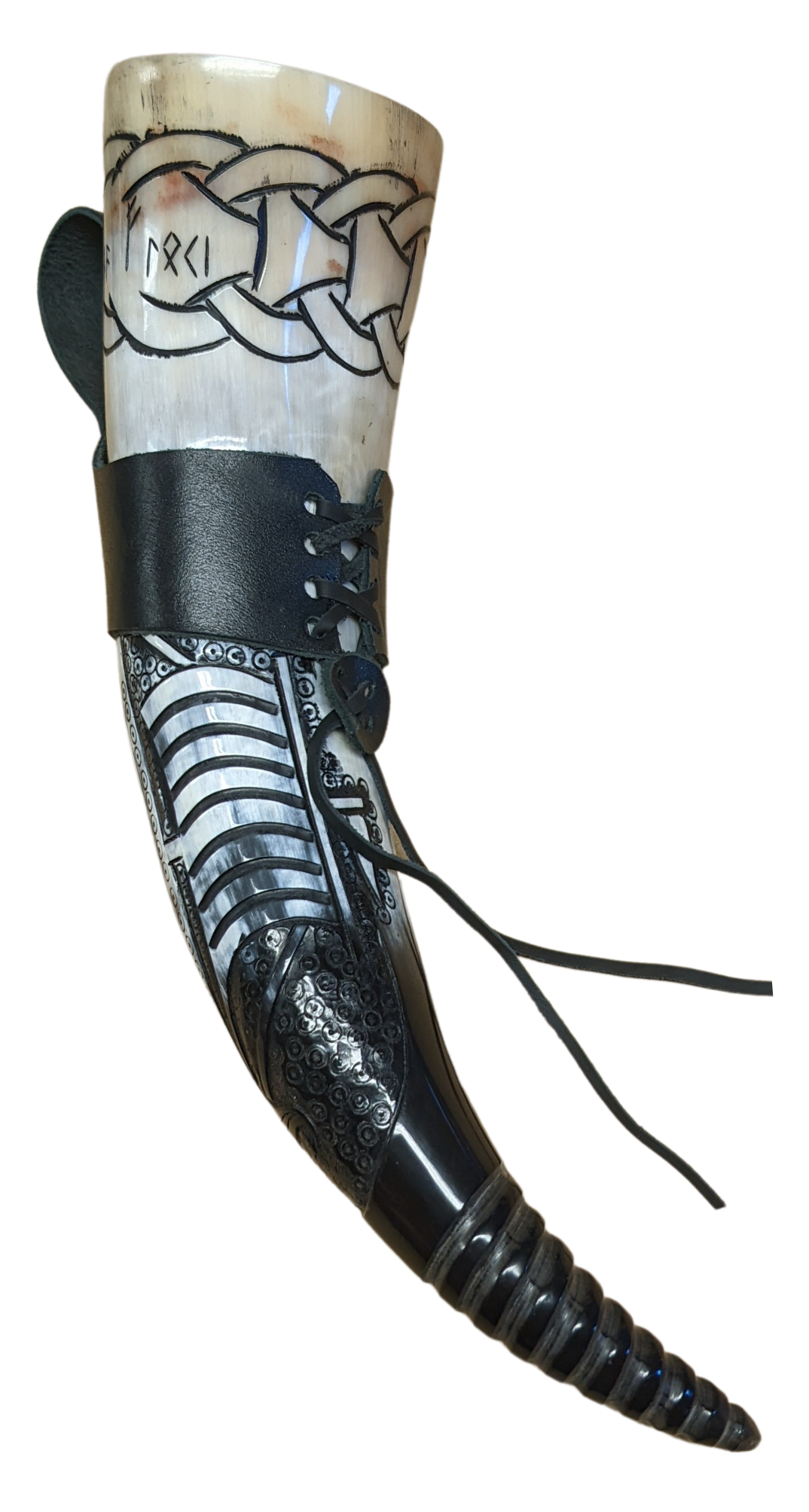 Hinweis: Jedes Trinkhorn ist ein Unikat, weshalb sich die Naturprodukte farblich leicht voneinander unterscheiden. Neben der charakteristischen Farbe Schwarz sind auch Weiß- und/oder Brauntöne enthalten. Wir empfehlen, das Horn vor Gebrauch gründlich mit warmen Wasser auszuwaschen. Bitte vermeiden Sie kochendes Wasser, da dieses der Schutzschicht schaden kann!